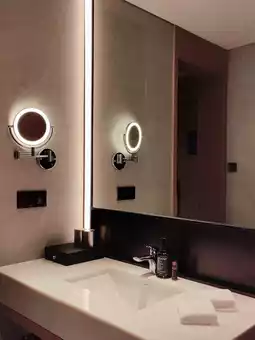 The breakfast deserves special praise. The hot dishes included seafood, which was definitely a unique highlight of their breakfast spread. The presentation was also well-plated, making it visually appealing at first glance. The restaurant’s decor was vibrant, with low-saturation green and brown as the main color palette. The gentle morning sunlight streaming onto the glassware on the long table made for a delightful start to the day.