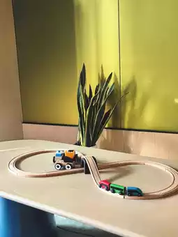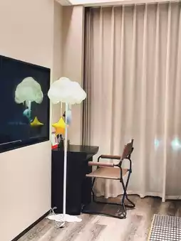 The camping suite is very family-friendly in terms of size, nearly 60㎡. The circular layout ensures flexible space and interaction, while the door connecting the living room and bedroom allows adults to work without being disturbed by kids playing. Beyond the fun theme, as a serviced apartment, the room is fully equipped with kitchen facilities: a dual-function fridge, microwave, washer, pots, kettle, and even small details like dish soap and laundry detergent are provided. It’s clear they’ve thoughtfully considered the daily needs of long-term guests.