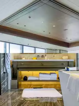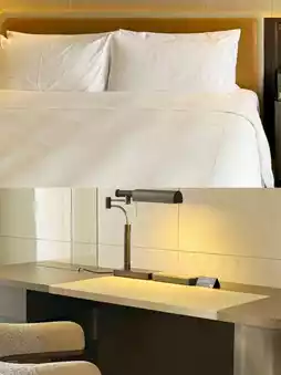 Entering the room, the thoughtful touches instantly win you over 😃. The toilet comes with an automatic lid-opening feature for added convenience and hygiene. The shower gel emits a captivating fragrance, turning every bath into an olfactory delight. The showerhead delivers water at the perfect temperature and pressure, ensuring a comfortable and refreshing experience. The high ceilings give the room a spacious feel, with a minimalist yet luxurious vibe. Small touches like the lamp tray and ice bucket feature woven leather designs reminiscent of BV, exuding sophistication. The most delightful surprise is the square bathtub by the window in the premium rooms, meticulously wrapped in luxurious stone and seamlessly integrated with the sofa. Sitting here, you can enjoy a relaxing soak while taking in the breathtaking views outside—pure bliss 🛁!