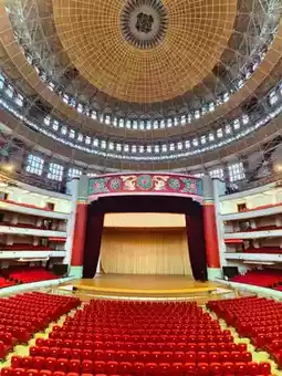 Inside, the auditorium echoed with silence and elegance velvet seats, golden lighting, and murals that whispered of Chongqing’s cultural pride. Outside again, the heat softened under the shade of nearby trees and pagoda-style roofs. Even in the city’s fast pace, the People’s Auditorium offered a graceful pause — a place where the past still speaks in structure and stone. 🎶🌿📸