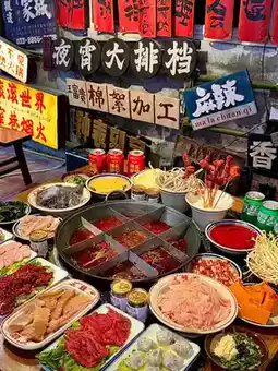 As night fell over Ciqikou, the heat of the day gave way to a different kind of warmth the kind that rose from bubbling pots and chili oil. Hotpot Street came alive with flashing neon signs, clinking chopsticks, and the irresistible aroma of peppercorn and beef fat. We picked a spot among the crowd, seated beneath glowing lanterns, and dunked thin slices of meat into the boiling red broth as sweat and laughter filled the air. 🍖🌶️🍺