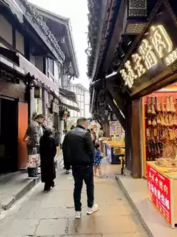 In the ancient city, there are snacks, restaurants, souvenir shops, milk tea shops, and traditional Chongqing pastries. It is suitable for those who are looking for local souvenirs to choose from.