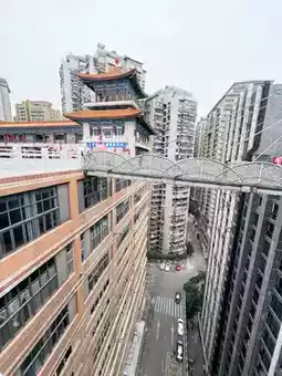 A building that you don't know what floor you're standing on. When you walk in, it feels like you're on the ground floor, but it's actually on the 22nd floor. You can see the tops of the surrounding buildings and the high view. Kuixinglou 魁星楼, or "Kuixinglou", is connected to a skywalk to another building on the other side. It looks like the building was built on a slope according to the terrain, so the entrance is on the first floor. But when you walk to the skywalk to the 22nd floor of the building on the opposite side, it feels very strange. This is also a popular photo spot and viewpoint in Chongqing.