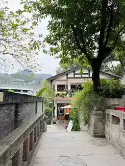 In the Long Men Hao area, 龙门浩 下浩里老街, a 4A-level tourist attraction in China, the Yangtze River Viewpoint + Dongshuimen Bridge 东水门大桥 can see the Raffles City, Chongqing Grand Threatre and other towers from a high angle. There are many shops, art cafes, art galleries, restaurants, and many photo spots. The building design is beautiful and unique. It is in the Chinese-Western style. It is suitable for visiting in the evening. At night, people start to get lively. The atmosphere is better than in the morning. In the morning, there will be fewer people, it is quiet, and shops are not open. It is suitable for taking pictures and walking around leisurely.