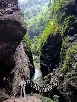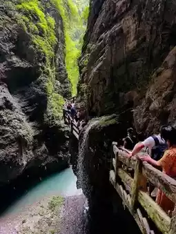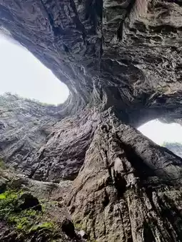 #chinatravel Three Natural Bridges is straight up epic. You’re walking through this deep canyon surrounded by these massive stone arches that look like nature just decided to build its own version of cathedrals. It’s hard to believe they’re real until you’re standing under one, looking way up at all that carved-out rock.