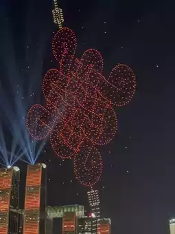 - Thousands of drones (think 3,500–10,000+!) sync to create 3D animations: pandas, spaceships, dragons, and even Chongqing’s iconic skyline!