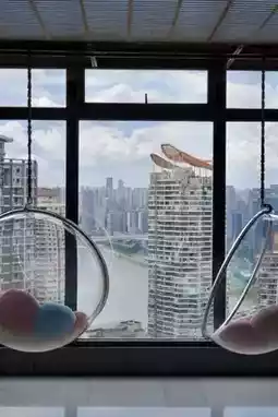 By day, watch the rushing river; by night, enjoy the dazzling city lights 🌆.