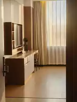 The room is spacious, clean, and tidy with complete facilities ~ even a thoughtfully prepared mini fridge! The toilet and shower are separate, which is very convenient!