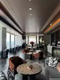 As a detail-oriented traveler, I prioritize public spaces and room design. The 52nd-floor lobby wows with its premium green marble surfaces and signature spiral staircase, instantly conveying luxury. After check-in, guests take separate elevators down to their rooms.