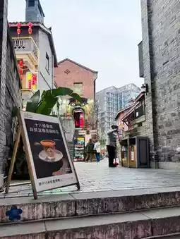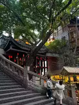Shibati, which translates to "Eighteen Steps," is a pedestrian street in Chongqing's Old Town. This area is lined with ancient stone steps and traditional Chinese architecture. Along both sides, you'll find restaurants, souvenir shops, handmade goods, and milk tea shops. There are five zones: A, B, C, D, and E. The area is quite large, and the atmosphere feels like stepping back in time. In the evenings, they perform live music for strollers. We loved it, especially at night, when it's beautiful and a perfect place to stroll. This area is bustling with activity.