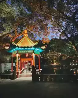 🌠 "Lotus Pond + Banyan Lake Rope Bridge": The reflections of the lights at night are breathtaking! A dreamy night park view.