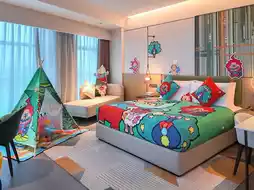 🎈Here are the adorable "Smile! Little Alien Beasts" parent-child themed rooms. Stepping into your room will make you feel like you've entered the magical realm of alien creatures. The soft, cartoon-inspired bedding will ensure your child sleeps sweetly every night. Specially equipped with children's toiletries, a bathtub, and a footstool, every thoughtful detail provides exclusive care for your child. Even more delightful, there's a wide selection of toys and books, creating a haven for children where knowledge and fun meet.