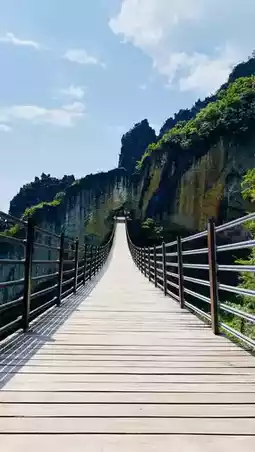 Walking on the suspension bridge, you are surrounded by countless mountain peaks.
