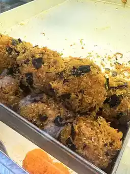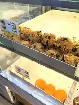 - Bread topped with shredded pork and seaweed Boiled Egg Mayonnaise Tart (海苔风味酥松小贝) - The aroma of seaweed and the softness of the bread go together perfectly. This is a popular takeaway menu item with many Thais.