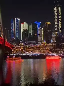 Next, we headed to Hongyadong via Xiaoshizi Station, then walked across 🌉 Qiansimen Bridge toward Jiangbeizui Riverbank Park for great views and photos of the 🌆 skyline. Staying until evening is highly recommended. The city 🌃⭐️ lights make the view unforgettable.