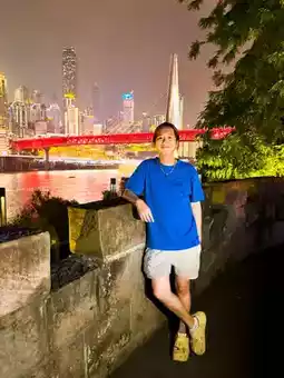 To get the best perspective, I crossed to the opposite riverbank, a spot highly favored by photography enthusiasts. From there, you can take in the full panorama of Hongya Cave glowing against the city skyline — stilted wooden structures cascading down the cliff, framed by modern skyscrapers in the background. It’s the postcard-perfect image of Chongqing and a must for any traveler.