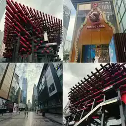 We crossed over to the Chopsticks Building, which is incredibly cool and chic. It's a great place to take chic photos. The roof is made of chopsticks inserted into the building, and the black and red colors really stand out.