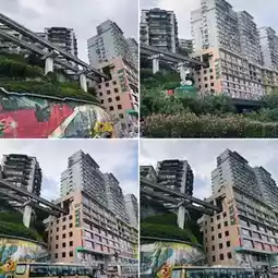 Another highlight of Chongqing is the train that goes through the building at Liziba Station. You have to check it out. Other areas, like the Yangtze River and Hongya Station, are just passing through during the day, but they look ordinary. I recommend visiting at night for the beauty you won't be disappointed.
