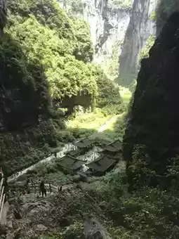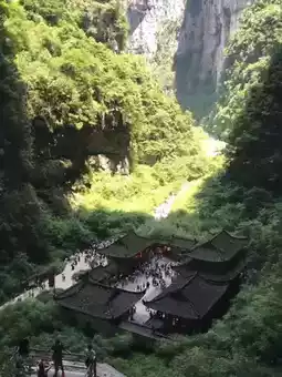 Three Natural Bridges (天生三橋) is located in Chongqing, China. This park covers an area of approximately 20 square kilometers. The terrain is comprised of limestone mountains formed by the collapse of the earth's crust, creating three large craters, some of which are hollowed out, resembling natural bridges spanning the mountains. The three bridges are the source of its name. It is a designated AAAAA-rated tourist attraction in China and was used as a filming location for the famous films "Curse of the Golden Flower" (2006) and "Transformer 4: Age of Extinction" (2014).