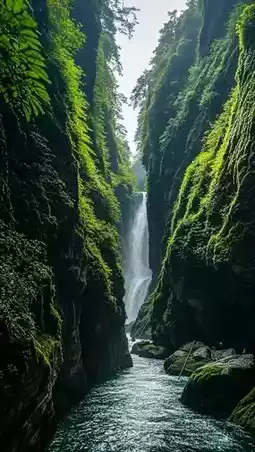 Longshui Gorge Fissure: A deep canyon fissure with cascading waterfalls, cool and refreshing.