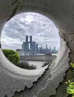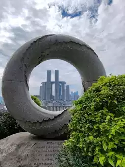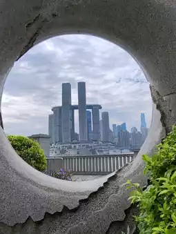 The vibrant doughnut sculpture on the street serves as a whimsical viewfinder. Pedestrians pause, creatively positioning themselves to frame the majestic Raffles City complex across the river within its circle. The click of the shutter captures a unique visual surprise—where the bold lines of modern architecture meet playful curves, resulting in perfectly composed urban portraits.