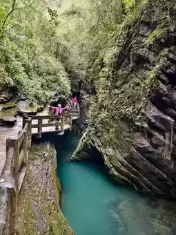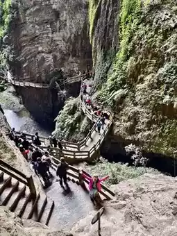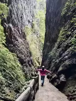Walking through the canyon, surrounded by towering cliffs and lush greenery, vines draping, and mist swirling, it feels like straying into a world far from the hustle and bustle of the earth's core. With every step, you can feel the force of the earth's crust and the traces of time. ⏰