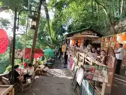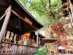The rustic wooden structure blends seamlessly with the verdant forest, while red lanterns and painted plaques add vibrant accents, exuding the rich charm of Bayu culture. Visitors can savor a cup of tea or lean against the railings to gaze into the distance, enjoying the rare tranquility and leisure amidst the mountain breeze, as if time itself slows down here. More than just a place to drink tea, it is an ideal spot to experience the unique allure of this mountain city.