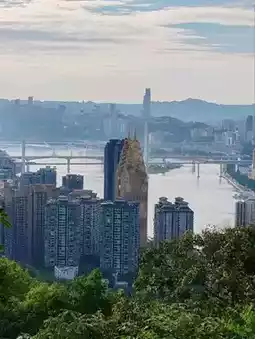 Ascending to Lao Jun Dong, the ancient Taoist temple with its red walls and yellow tiles stands in striking contrast to the modern city in the distance. From this vantage point, the majestic grandeur of the mountain city unfolds before your eyes. The winding Yangtze River, the soaring bridges, and the towering high-rises form an orderly yet dynamic skyline that pierces the clouds. Encircled by lush greenery, this concrete jungle appears vibrant and full of life. Here lies the finest perspective to overlook Chongqing’s urban landscape, where bustling city life and serene nature coexist in harmony, creating a refreshing and uplifting experience.