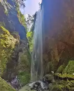 Standing at the canyon entrance, you will see an 80-meter-high waterfall curtain descending from the sky, majestic and imposing. Once inside the canyon, you will feel as if you are in a giant natural air-conditioned room; even in the scorching summer heat outside, it is cool and breezy here. Inside the canyon, ancient trees and vines entwine, spring water flows and waterfalls hang on the walls, strange rocks stand ruggedly, and the clear stream rushes rapidly—every step is a surprise.