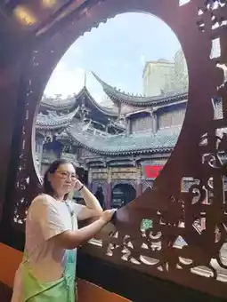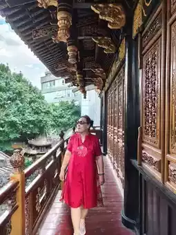 During the National Day holiday, I spent an hour and a half visiting Luohan Temple in Chongqing. The temple was originally built during the Zhiping period of the Northern Song Dynasty and was initially named Zhiping Temple. It was established because of the Luohan Cave and was renamed Luohan Temple in the 11th year of the Guangxu reign in the Qing Dynasty. It is a nationally protected cultural relic, one of the key Buddhist temples in China, and the location of the Chongqing Buddhist Association. Situated in the heart of Yuzhong District, it is famous for its Song Dynasty cliff carvings and its unique landscape within the modern city. Wearing a traditional Chinese qipao and standing in Luohan Temple, the photos come out great.
