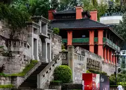 Climb the slippery stone steps to the mountaintop, the temple’s red walls are stunning in the rain. Kneeling on the meditation cushion with eyes closed, the Yangtze River turns into a silver chain winding through the clouds and mist—this scene is truly magical!