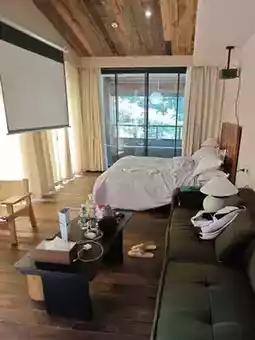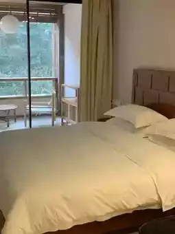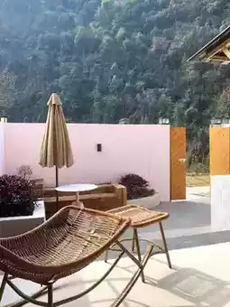 At the foot of Jinfo Mountain, surrounded by mist, the air is filled with the scent of grass and trees—one breath is super relaxing. The room combines natural wood and modern styles, warm and cozy! The balcony is small but the view is amazing, full of greenery and mountain scenery. Sitting here daydreaming is pure bliss 💚
