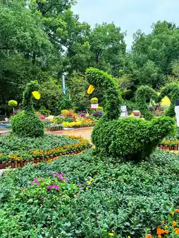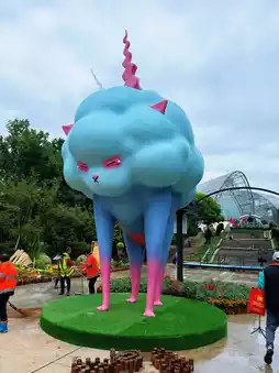 👉 Right at the entrance is the most exquisite chrysanthemum art display, featuring various shaped chrysanthemum flower piles. The cute little lamb in the middle of the square is especially adorable.