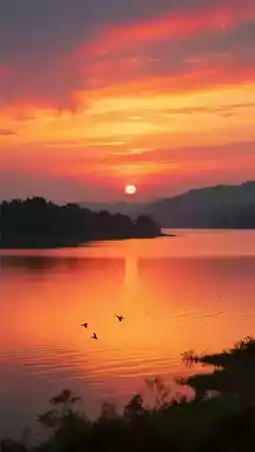→ Mist covers the lake, occasional fishing boats pass by, dreamlike