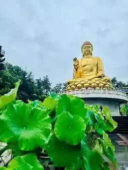 After the meal, go to Guanyin Courtyard to copy sutras, ring the bell, and enjoy a cup of Ba Ba tea to relax. In late June, the Qibu Lotus Pond blooms with lotus flowers, every casual photo is full of artistic charm.