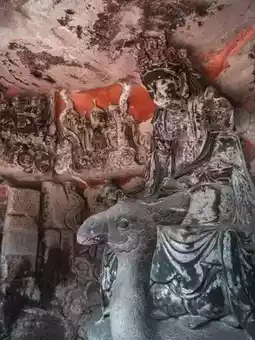 - Peacock Cave: Survived because it was once used as a kitchen by later generations, the existing Peacock Wisdom King statue is somewhat darkened; behind the cave is an abandoned Qing Dynasty temple containing a late Tang Dynasty scripture stone pagoda, worth exploring.