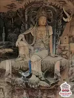 Carved during the Tang, Five Dynasties, and Northern Song periods, it currently has 103 niches and 1,933 statues. Major statues include Shakyamuni Buddha on the northern cliff, Pure Water Vase Guanyin, Lotus Hand Guanyin, and on the southern cliff, Vaisravana King, Sixteen Arhats, Kṣitigarbha and Ten Kings transformations, and combined Buddhist and Taoist niche statues.