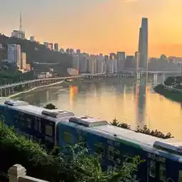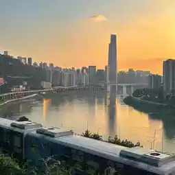 · The harmony of the Yuzhong Peninsula Monorail and modern buildings