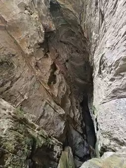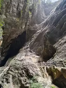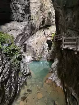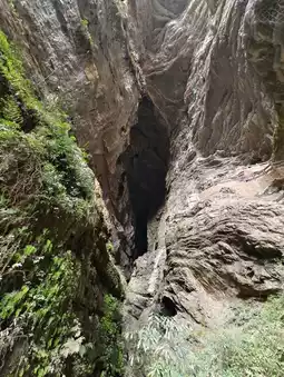 The canyon stretches 5 kilometers, with approximately 2 kilometers accessible for visitors. It comprises three sections: the entrance gorge, a tunnel through the middle section, and the exit gorge.