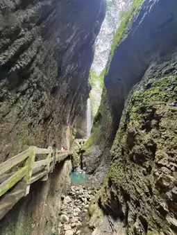 The canyon's sides are characterized by steep cliffs and precipitous rock faces. Inside, dense primeval forests abound, and numerous waterfalls and streams create a magnificent spectacle.