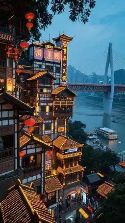 Evening walk to [Hongya Cave], avoid the 6:30 PM crowd peak, enter at 7:00 PM just right