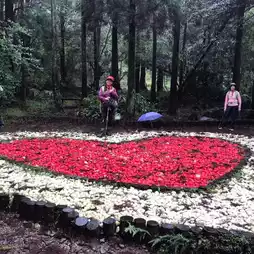 The itinerary can start from the Zhuzihu Police Station, walk along the Shuicheliao Waterway Trail to Dinghu Station, and then enter the Black Forest from a small side road off Zhuzihu Road (a popular wedding photography spot in recent years) where there is a double-heart pattern made of red and white pebbles in the clearing among the cedar trees.