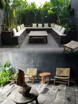 The overall color scheme is black, white, and gray, with simple geometric structures and a minimalist oriental Zen style. The arched corridors, spiral staircases, and maze-like paths are full of design elements. The Mediterranean style and Chinese architecture are cleverly combined, with every brick, tile, and plant exuding a "holiday vibe."