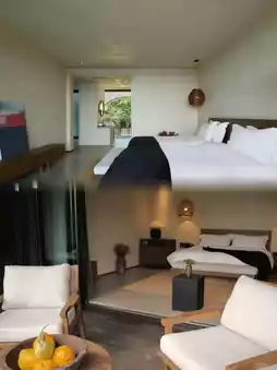 There are 20 rooms, each with an area of at least 60 square meters. The modern Chinese style is expressed through wood, cushions, and micro-cement. The rooms are equipped with Dyson hairdryers, Marshall speakers, and Atelier Cologne toiletries, among other star-rated amenities.