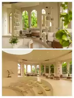 √ Curved space design, with a sunken stage, 🥒🌽🥬 and a wall full of unique objects, adding an elegant touch. √ Neatly arranged books, bringing peace of mind.🏄♂️🚙⛲💦.