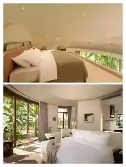 The standalone mushroom house faces the Heishui River, with 180° floor-to-ceiling windows, allowing you to enjoy the greenery outside from the comfort of your room.👏👏👍👍, as if you were living in a tropical rainforest. √ Each room is equipped with an indoor bathtub, outdoor open-air pool, and other facilities, perfect for a summer water experience. ~🎒👛🏡