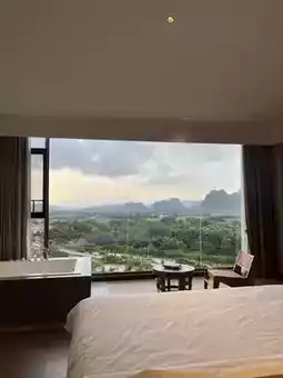 Pristine floor-to-ceiling windows + automatic curtains that open with one click. Facing the mountains 🌄 Spring-like all year round, a true lover of scenery! Watch the milky mist curl around the mountaintops in the morning. Cuddle on the terrace in the evening, watching the pink and purple sunset glow 🌇. Enjoy a bath together in the bathtub at night, gazing at the Milky Way 🌌. Needless to say, the intimacy is tailor-made for couples 👩❤👨!