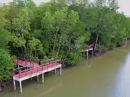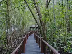 A wooden nature study bridge that stretches into the heart of the forest Take you for a walk under the shade of the mangrove, Acacia, and Lamphu trees with a sign that says "Tell a Story". Each tree seems to have its own voice.