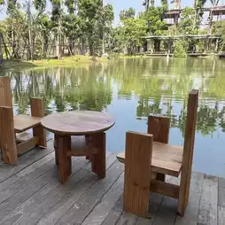It is a treehouse cafe with a fairly large area, located by the sea.