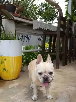 As soon as customers enter the shop, Kanun, a French bulldog, hurries to greet customers from her roost with a friendly expression. We order coffee, and she follows us, as if eager to play with us. Kanun, let's have some coffee and cake first, then we'll play with you.